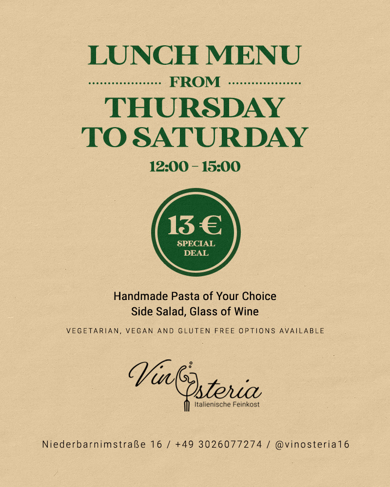 "Indulge in the flavors of Italy without leaving Berlin! VinOsteria is an unforgettable journey through Italy's vineyards and distinct osteria food culture with fresh Italian meats and cheeses.